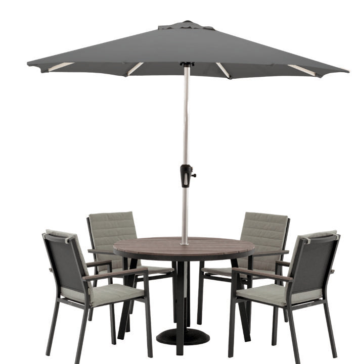 - With 4 Chairs, Table, 2.5m Parasol & Base